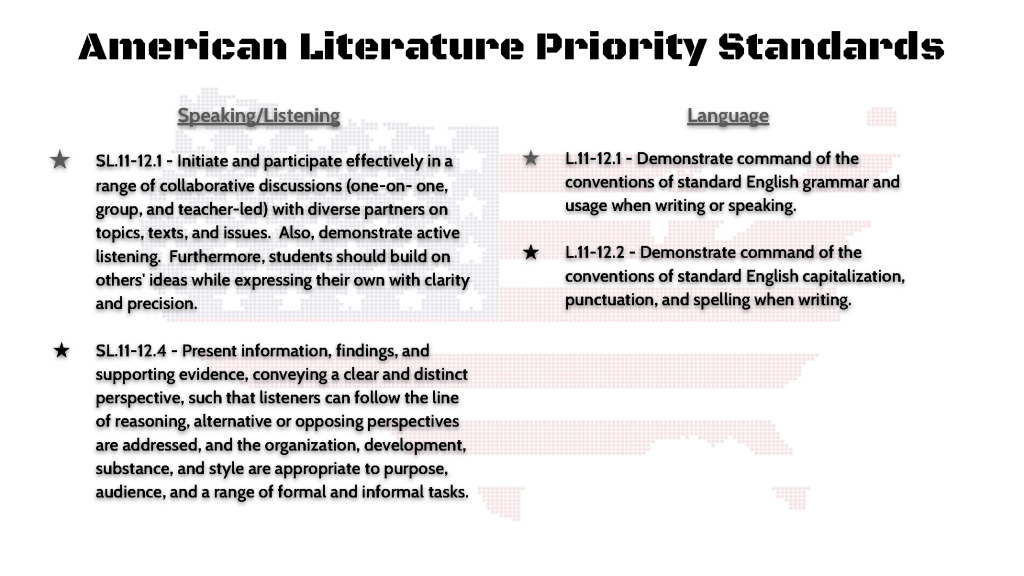 - Students will read/watch significant and representative works of American literature.